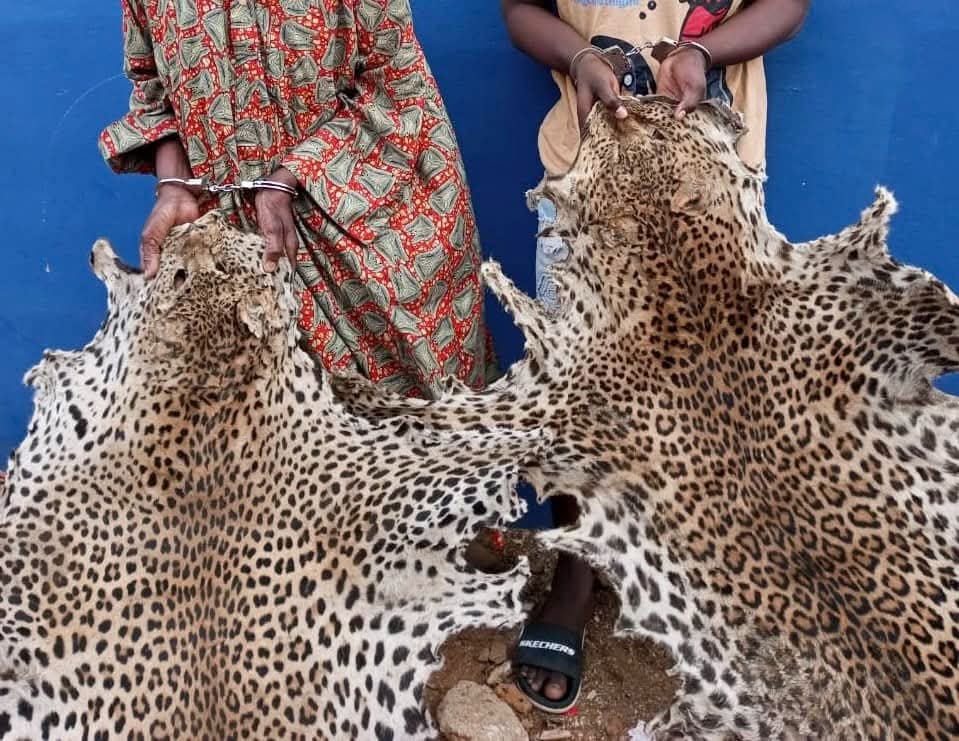 Three of the traffickers were arrested with two leopard skins they had carefully concealed in a military backpack as they arrived at the scene of transaction on a motorbike attempting to sell the contraband. About two hours later, two other traffickers were arrested with a leopard skin packaged in a plastic bag and concealed in grains bag attempted to sell as well. An hour later, two more leopard traffickers including a Guinean were arrested with a leopard skin and a hyena skin. One of the traffickers is suspected to be in connection to a local terrorist group.